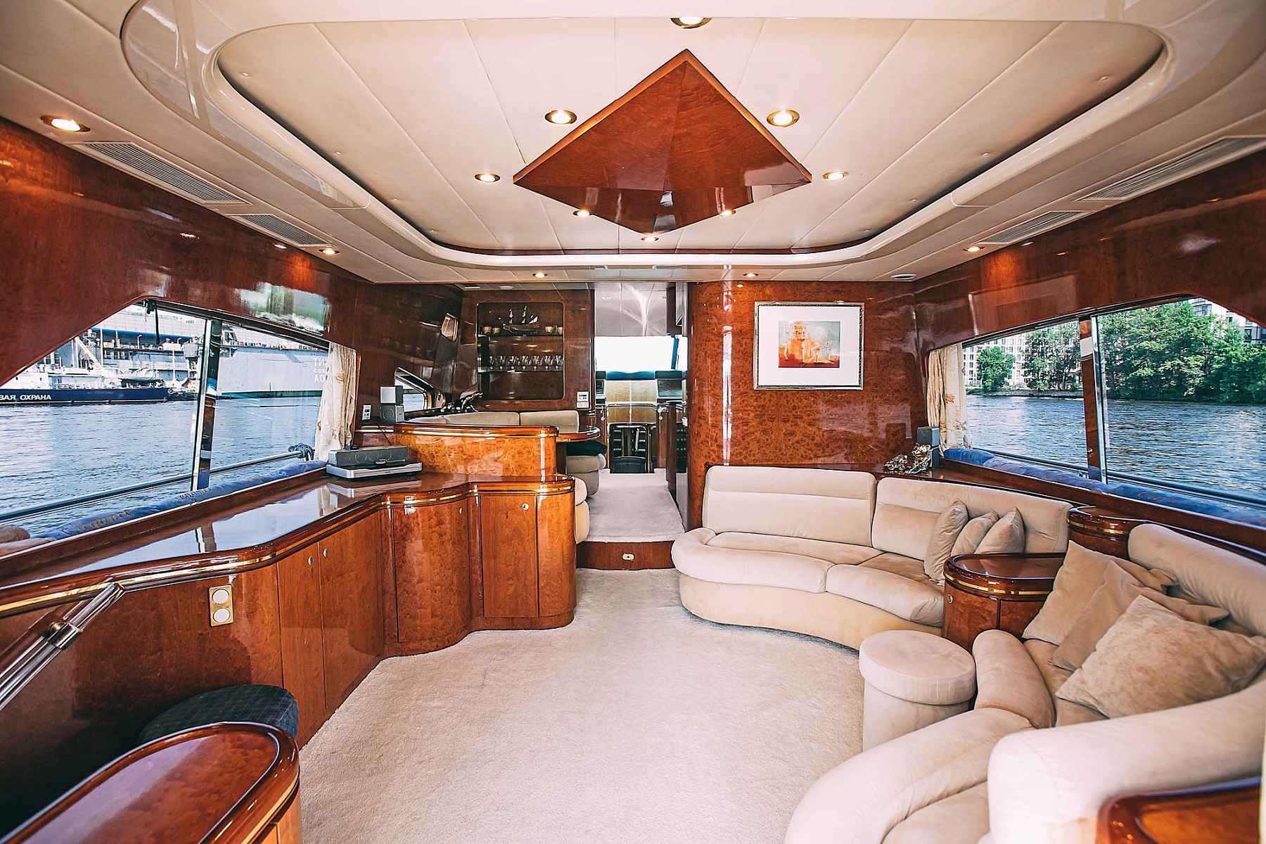 Каждая деталь на борту пропитана изысканностью: отделка из благородного дерева, просторный флайбридж и уютный салон с мягкими диванами и стильными столиками. Для вашего удобства на борту предусмотрена кухня с современной техникой, качественная аудиосистема с Bluetooth, а также два гальюна и уютные теплые пледы для прохладных вечеров.