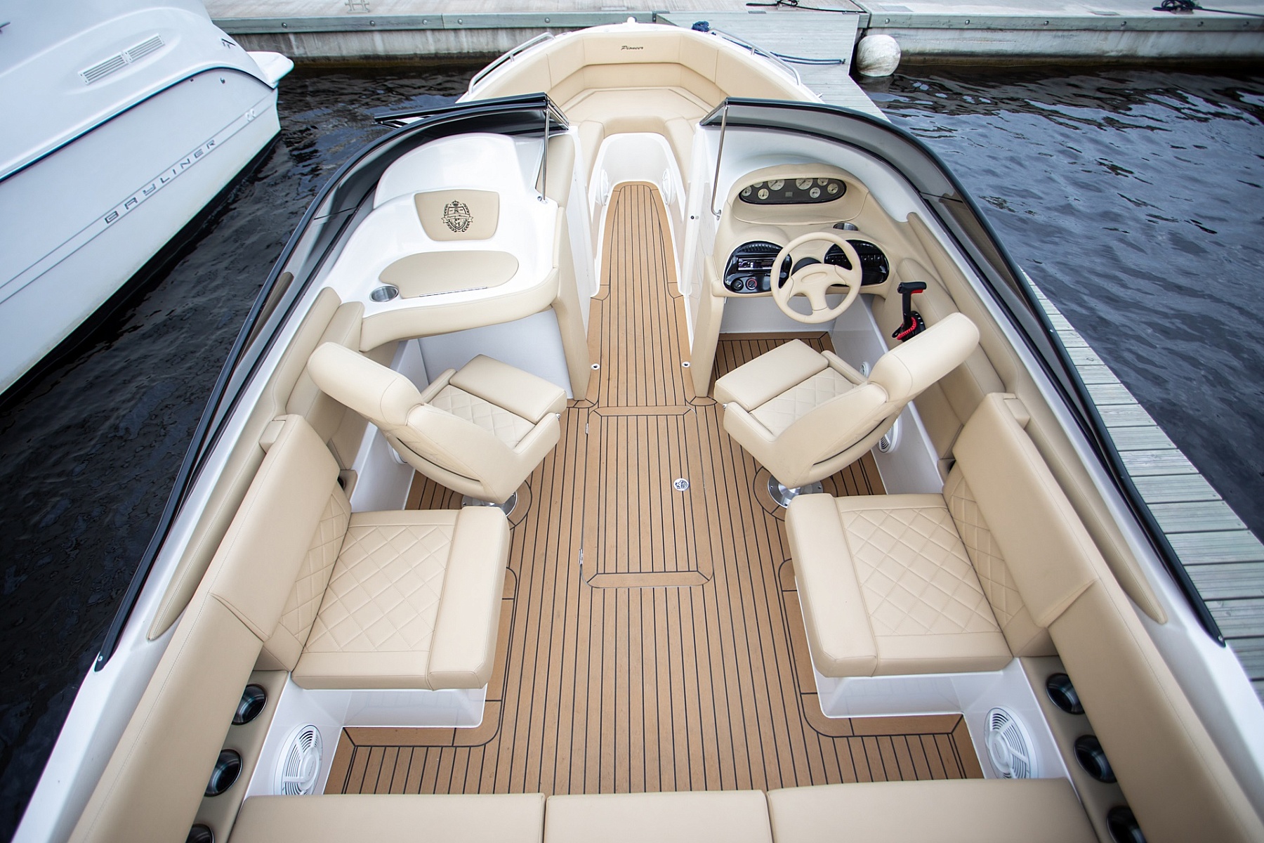 Катер «Пионер» — это идеальное сочетание стиля и комфорта. Дизайнерский интерьер с кожаным салоном создает атмосферу роскоши, а открытая зона на носу приглашает вас насладиться свежим воздухом и живописными видами.