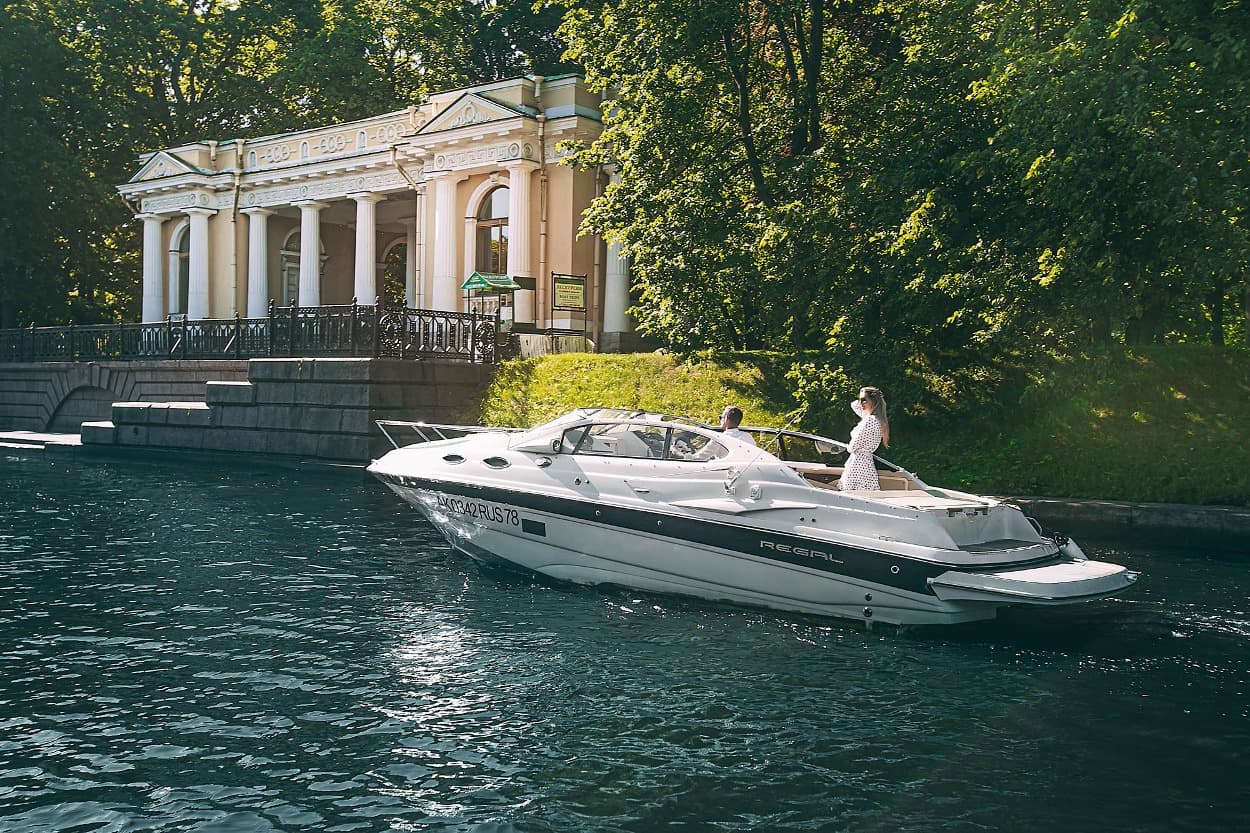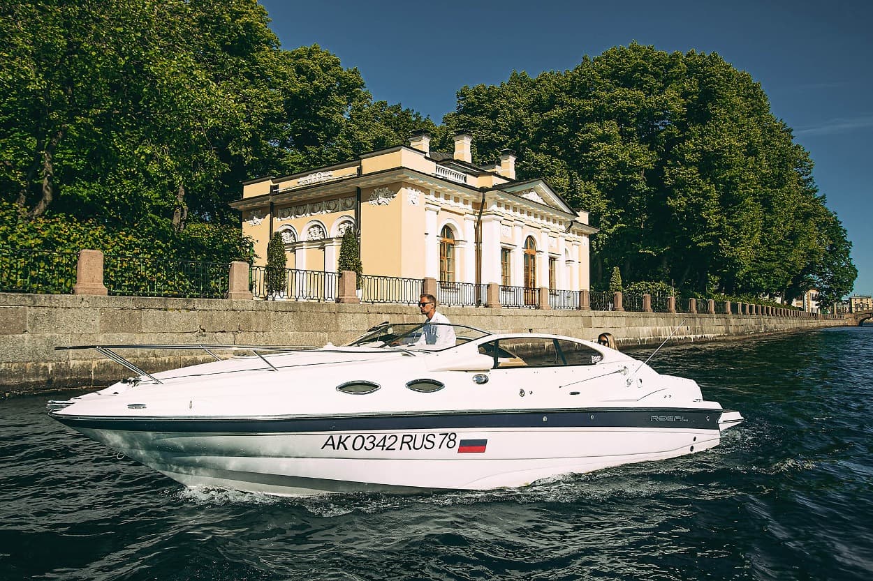 Катер Regal 265 — это сочетание комфорта и стиля для прогулок по Неве и каналам Санкт-Петербурга.