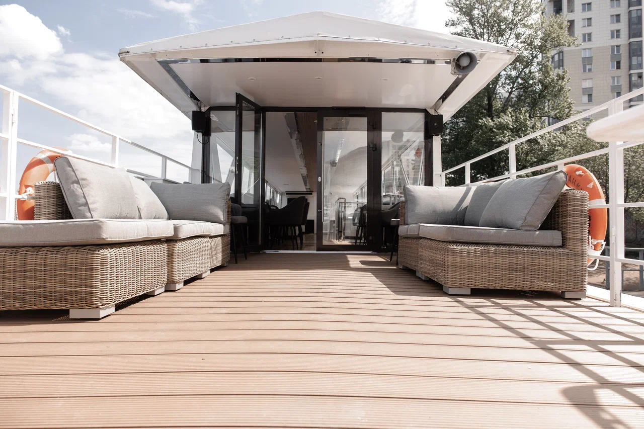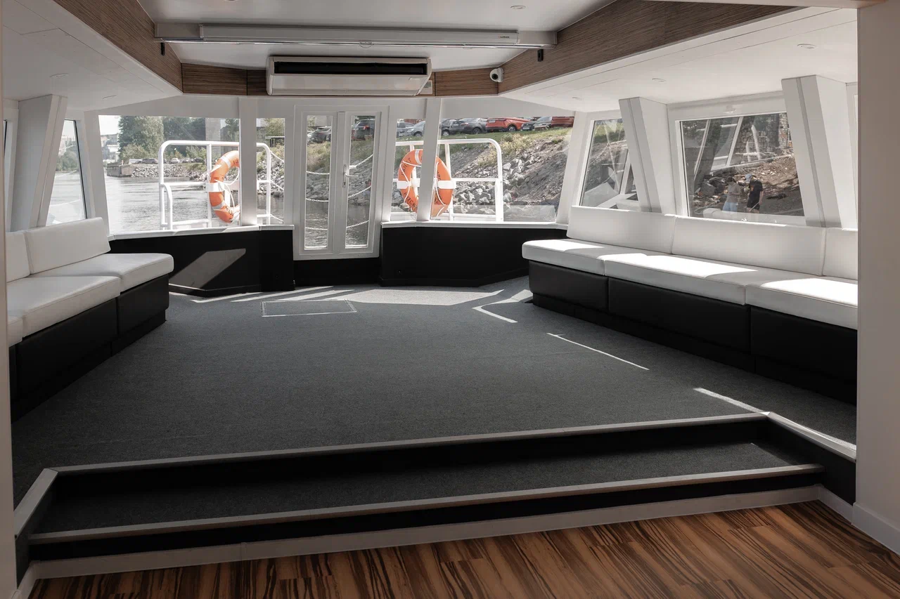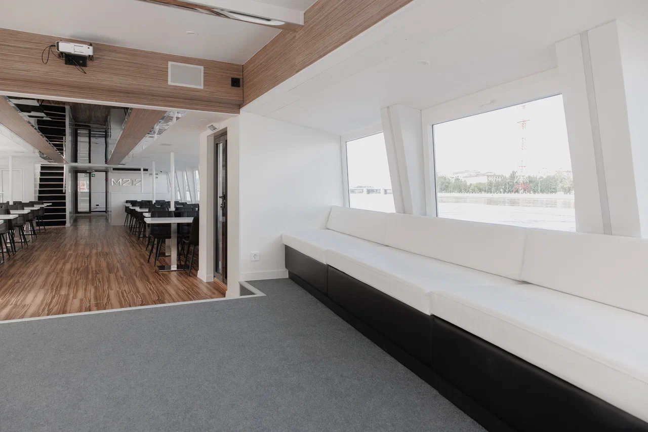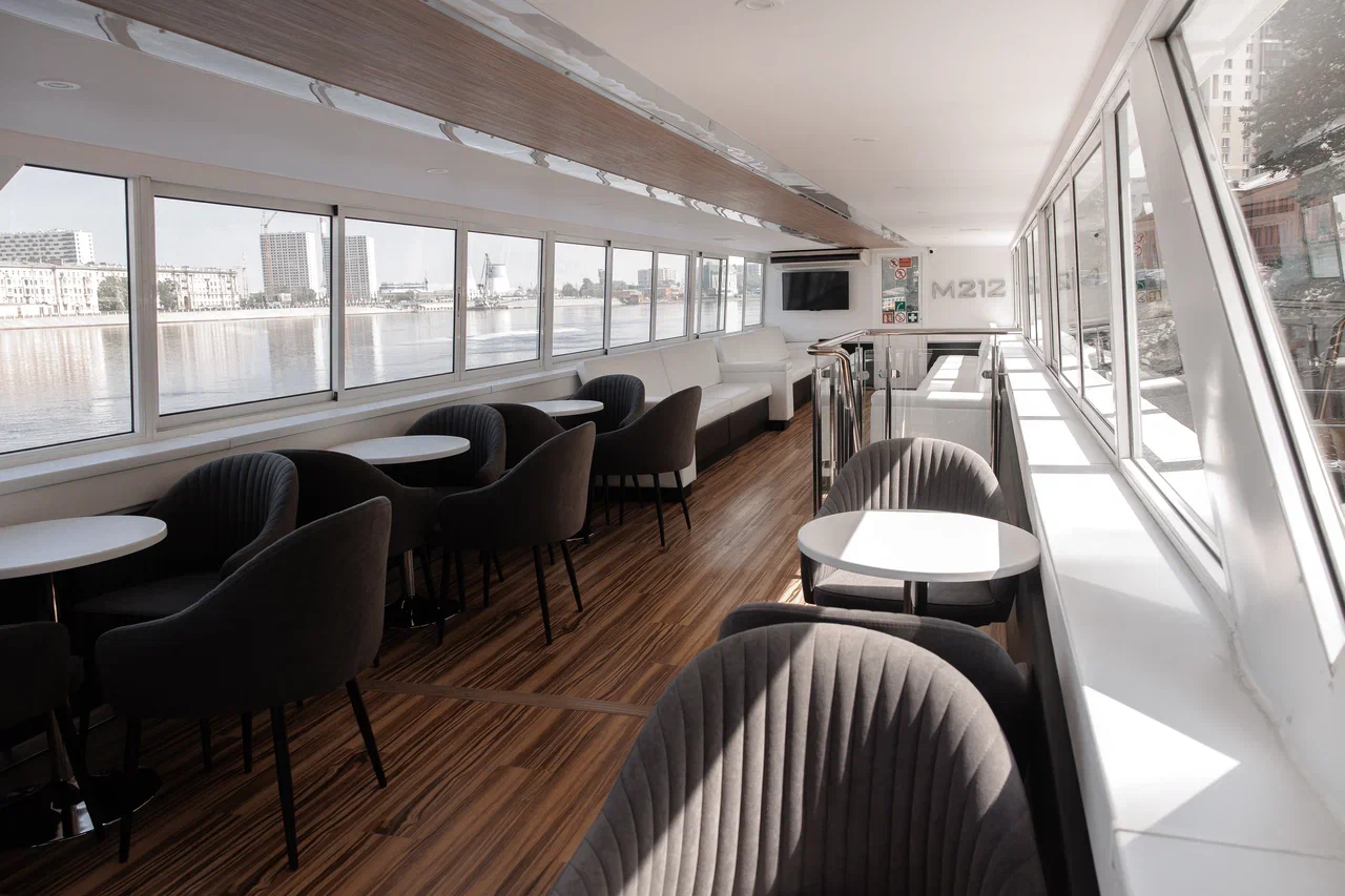 Двухпалубный теплоход «Москва-212» (проект 2024 года) вмещает до 120 человек и представляет собой идеальное сочетание современного дизайна и комфорта. Он оснащен закрытым салоном с баром и комфортной мебелью, а также открытой палубой, которая идеально подходит для лаунж-зоны.