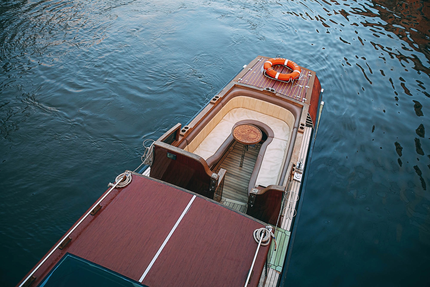Крытый салон с кожаной мебелью позволит насладиться поездкой в любую погоду. Внутри катера есть мини-кухня для приготовления закусок, удобная уборная, а также система кондиционирования и отопления, что обеспечит комфортный отдых при любой температуре. Для развлечений на борту предусмотрен телевизор с караоке и мощная аудиосистема. Теплые пледы согреют гостей в прохладную погоду.